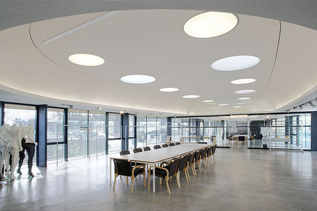 Kunden aus aller Welt bewundern den neuen Showroom mit Cafeteria am Hauptsitz des Textilunternehmens Marc O´Polo in Stephanskirchen. Die Zentrale von Marc O´Polo, in der auch die Designschmiede beheimatet ist, ist um einen imposanten Showroom mit Cafeteria erweitert.